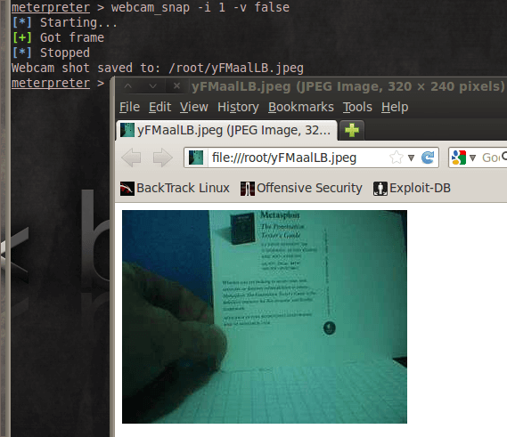 Using webcam_snap Meterpreter plugin | Metasploit Unleashed