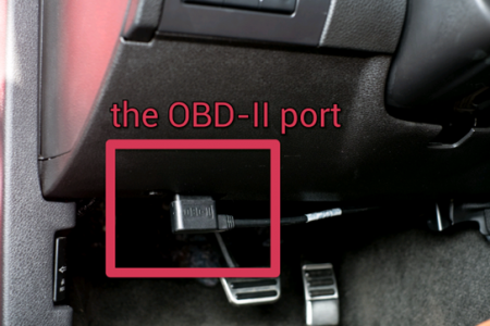 These ports are usually very easy to access. They are normally under the dashboard by the pedals, behind the steering column, or even under the dashboard on the passenger side. Here is a picture of a plug in an OBD-II port:
