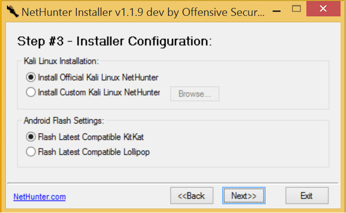 Kali NetHunter 1.2 Released! Kali NetHunter 1.2 is fresh out, with a whole bunch of improvements, bug fixes….and yes, Android Lollipop support. This means that NetHunter now supports the Nexus6 and Nexus 9 devices too! This is awesome news to all those who have bought these new Nexus devices and have yearned to install the