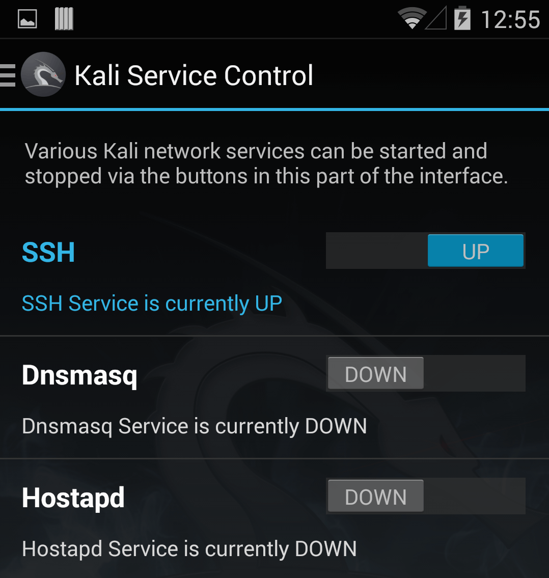 When we initially released NetHunter, we added a simple web interface to help manage and run certain tools. We didn’t love this idea but it helped rapidly develop a management interface which we wanted to introduce. Since then, we’ve been working on a better and more stable native Android application to replace the web interface – and now, we are ready to debut it. With all the functionality of the previous web application interface and more, this new NetHunter app has been added to the latest v1.1 release.