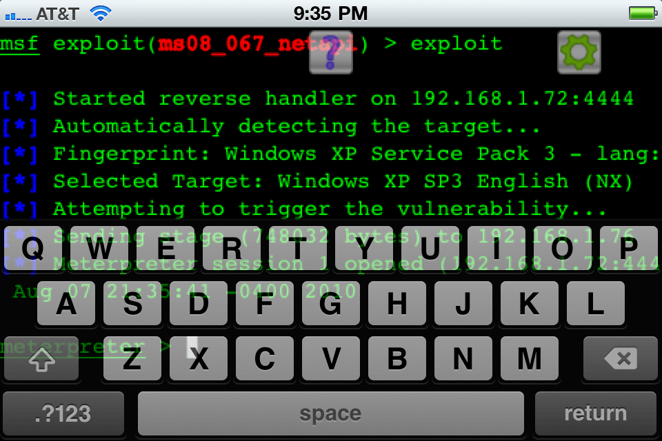 Just a quick update on getting your favorite tools on iOS 4 – Metasploit and SET. You need to have a Jailbroken iPhone with SSH access for this. You will also need to install nano and APT 0.7 Strict via Cydia. Getting everything up and running is a breeze now. Open a console and type in: